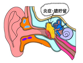中耳に液体がたまるために、耳がふさがったような感じ、聞こえが悪くなるなどが起こります。乳幼児は自分で症状が伝えられないので、耳をさわったり、 頭を振る、呼びかけへの反応が鈍くなるなどの行動でわかることがあります。小学生以上では聞こえの悪さを感じることがあります。テレビの音が大きくなったり、 聞き返しが多くなったりします。