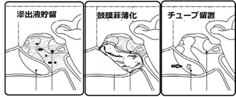 自然軽快することも多いですが、遷延する場合は、薬物治療としては、粘液溶解薬の内服が勧められています。 アレルギー性鼻炎や鼻副鼻腔炎がある場合は、滲出性中耳炎に悪影響している可能性があり、これらに対する治療も同時に行います。 3か月以上経過し、中等度以上の難聴や鼓膜の変化があれば、それ以上待ってもなおらないことが多く、鼓膜に小さなチューブを入れる小手術(鼓膜チューブ留置術) が必要になることがあります。