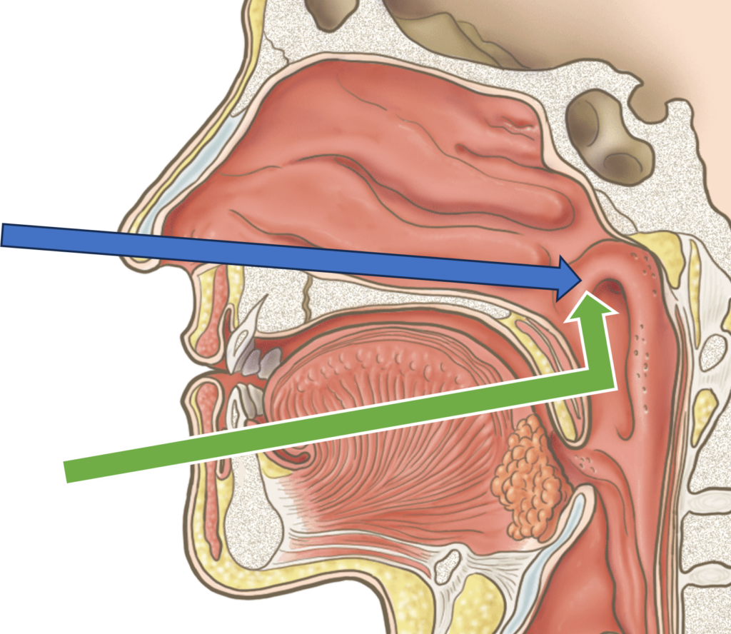 これは慢性上咽頭炎の治療法の一つです。慢性上咽頭炎とは、鼻の奥、口蓋垂のさらに奥にある上咽頭という部分が、長期間炎症を起こしている状態のことを指します。